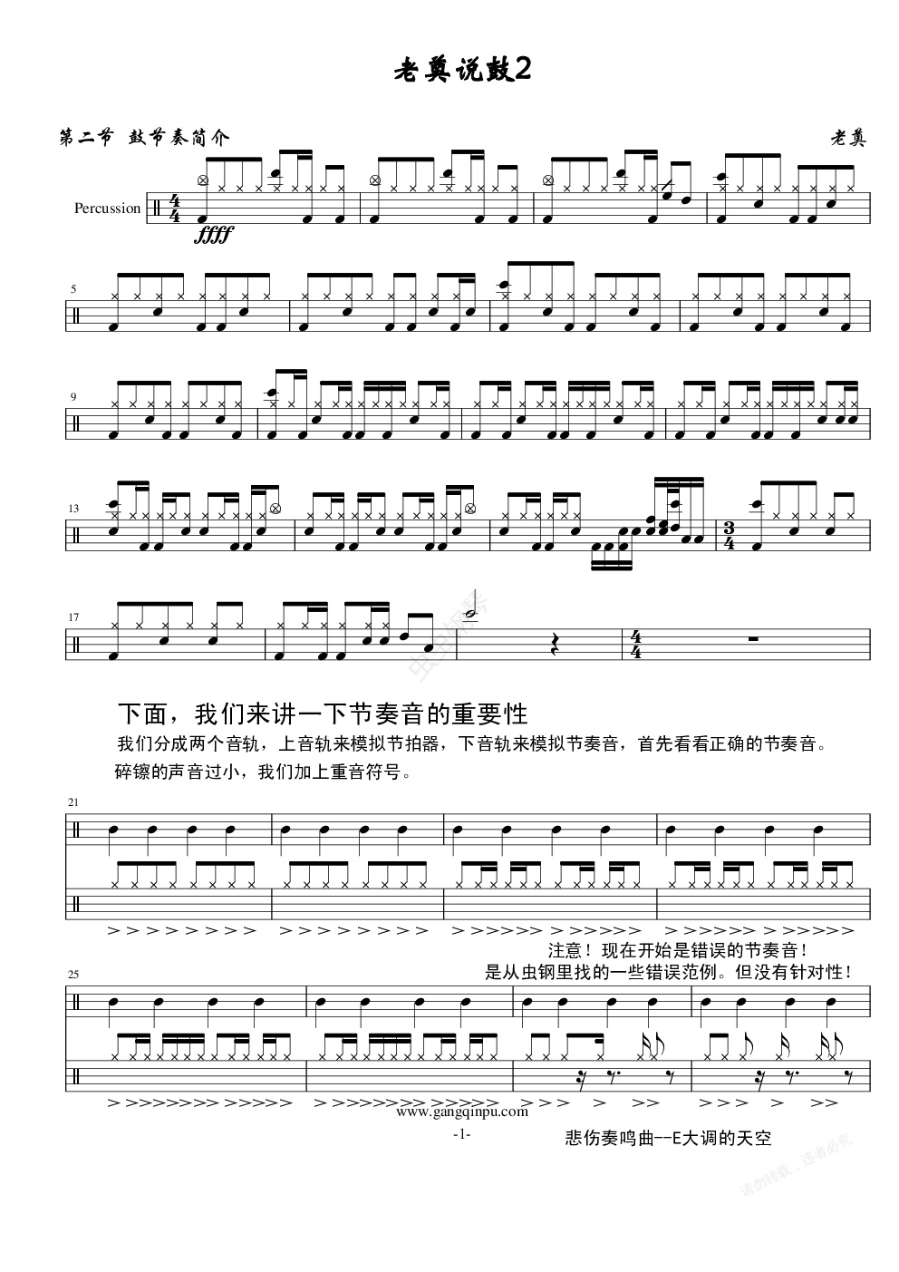 钢琴谱:老奠说鼓2节奏音