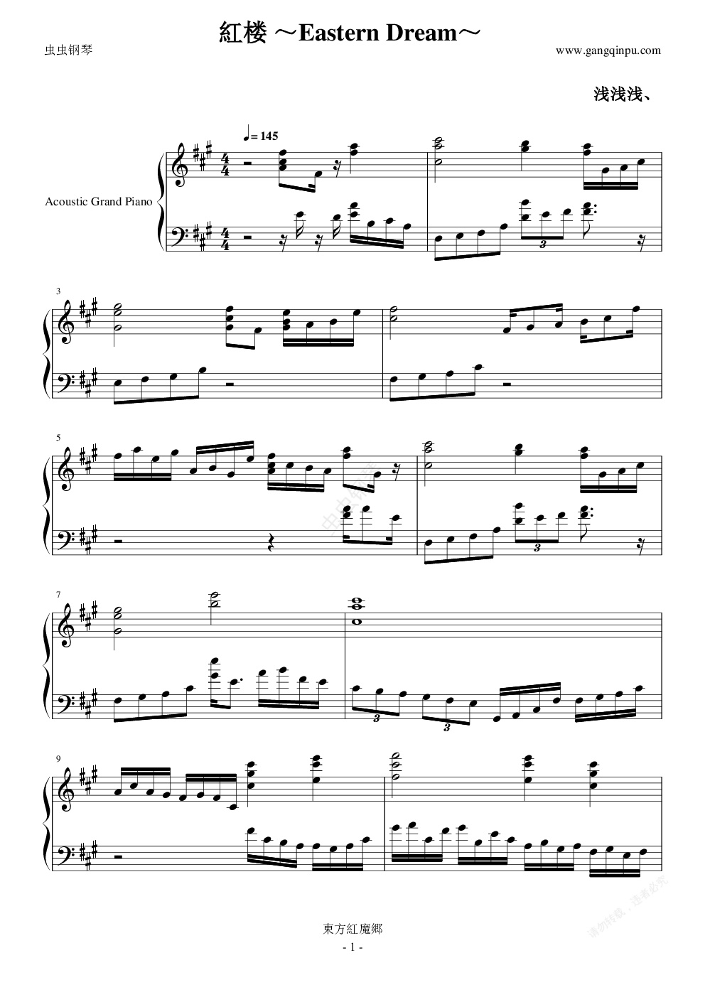 钢琴谱:【東方紅魔郷】紅楼 ~ Eastern Dream