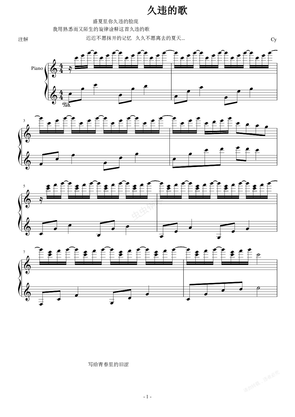 钢琴谱:回到过去,让故事继续