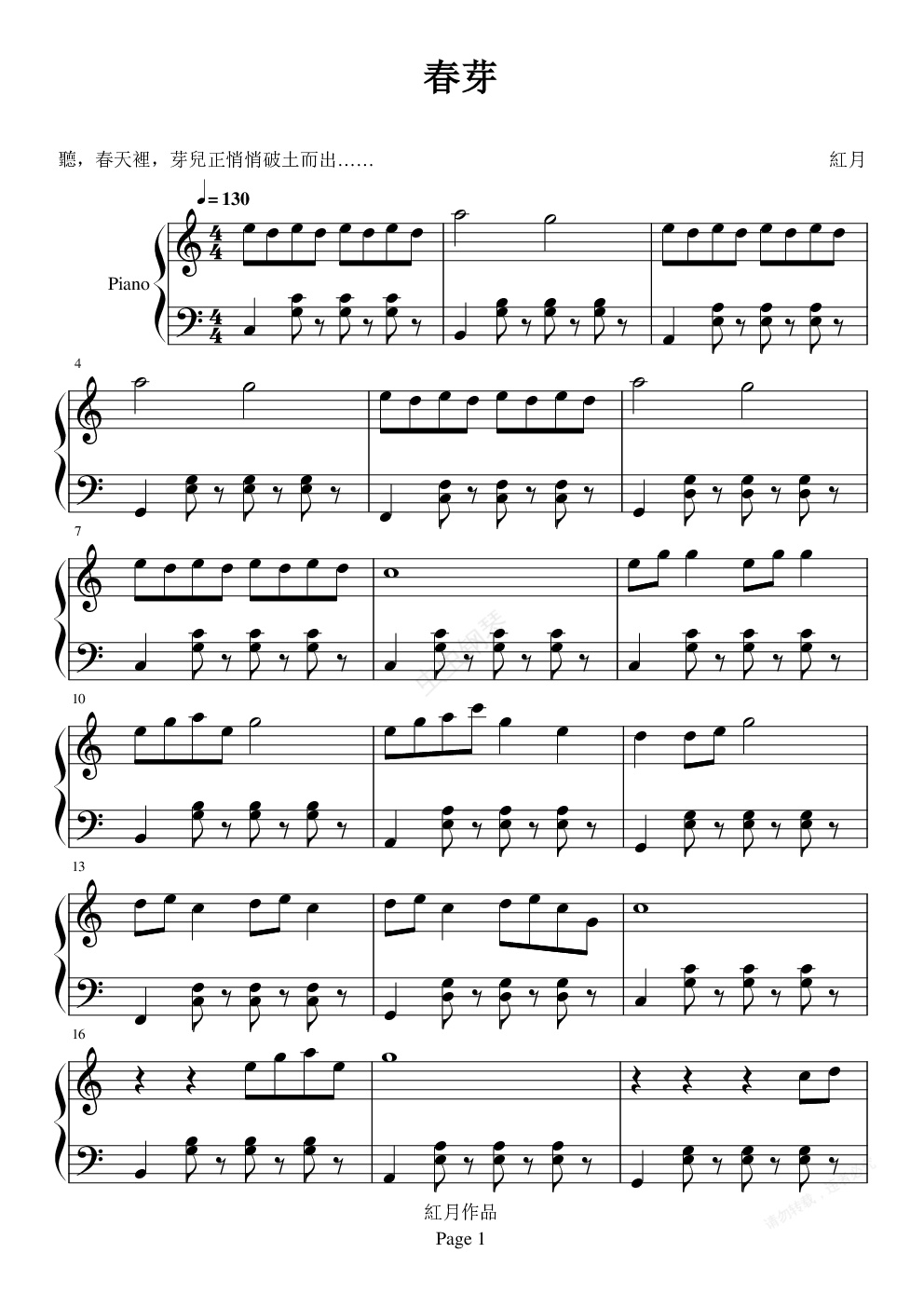 钢琴谱:春芽