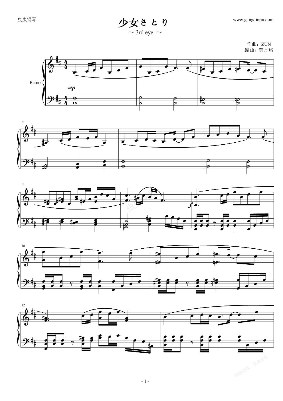 钢琴谱:少女さとり ~3rd eye