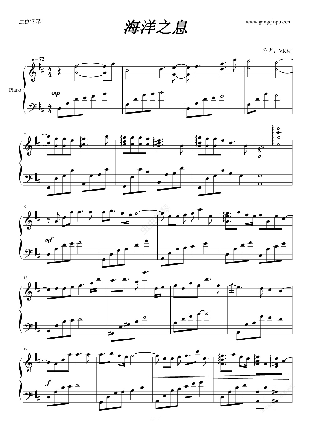钢琴谱:海洋之息