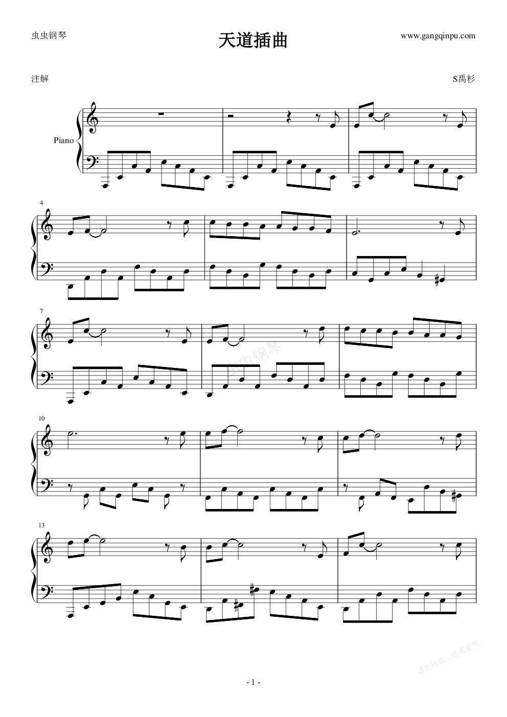钢琴谱:天道 钢琴插曲