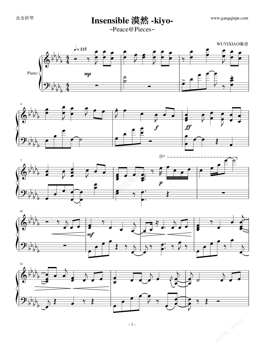 钢琴谱:Insensible 漠然 (Peace@Pieces)