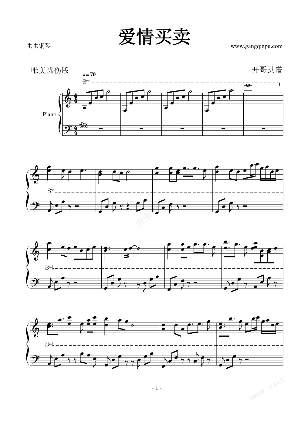 钢琴谱:爱情买卖唯美忧伤版
