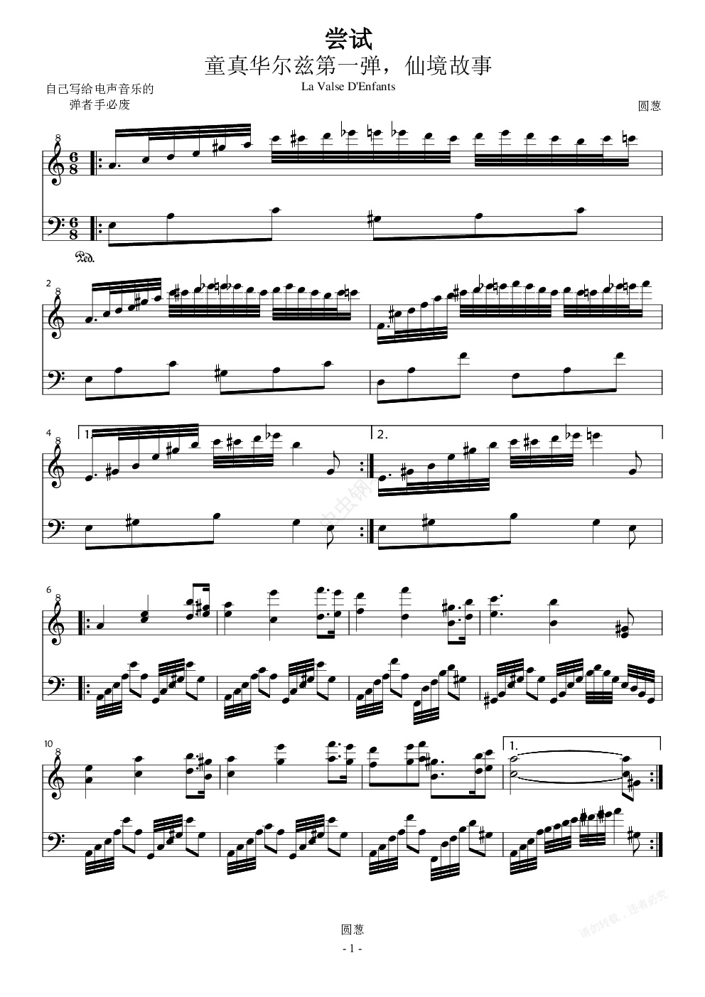 钢琴谱:童真华尔兹第一弹,仙境故事