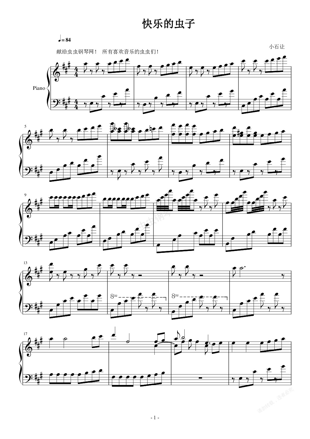 钢琴谱:快乐的虫子 (献给虫虫钢琴网)