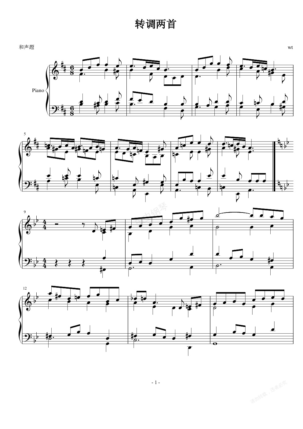 钢琴谱:转调两首