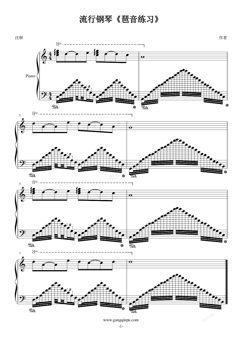 钢琴谱:流行钢琴《琶音练习》