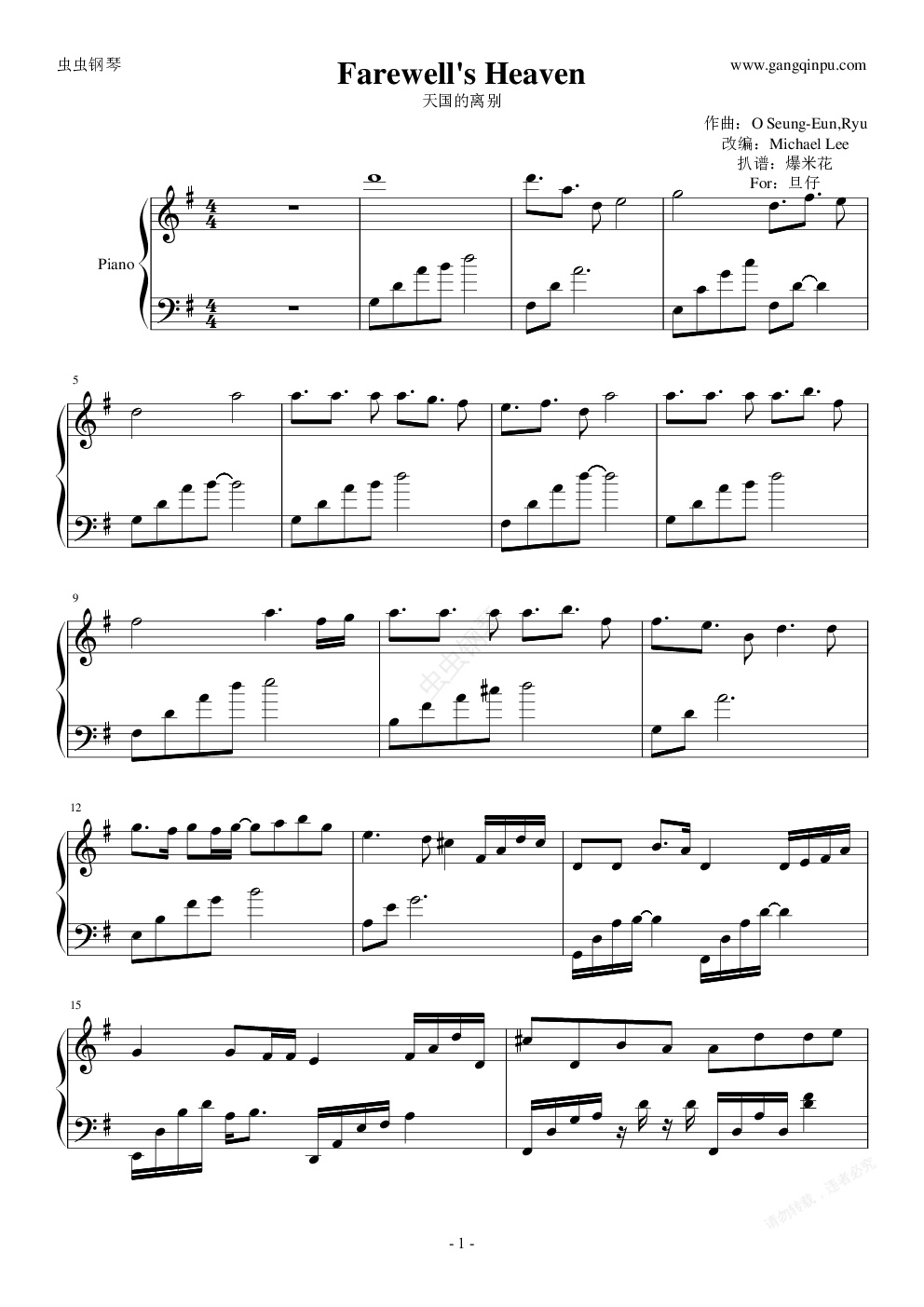 钢琴谱:Farewells Heaven