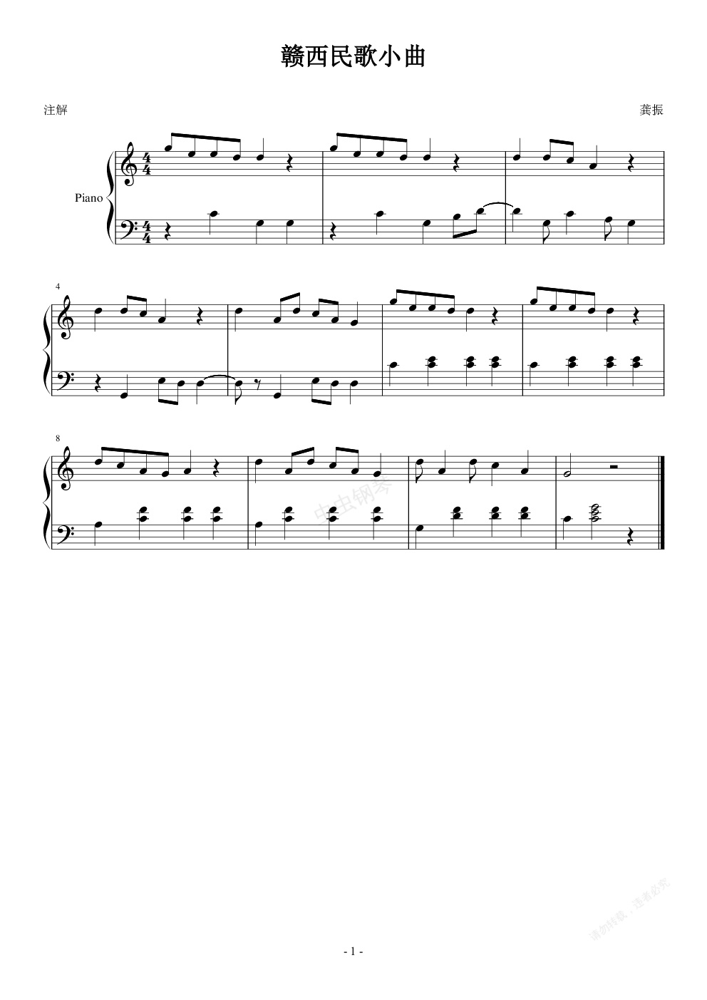 钢琴谱:作曲课作业 赣西音乐