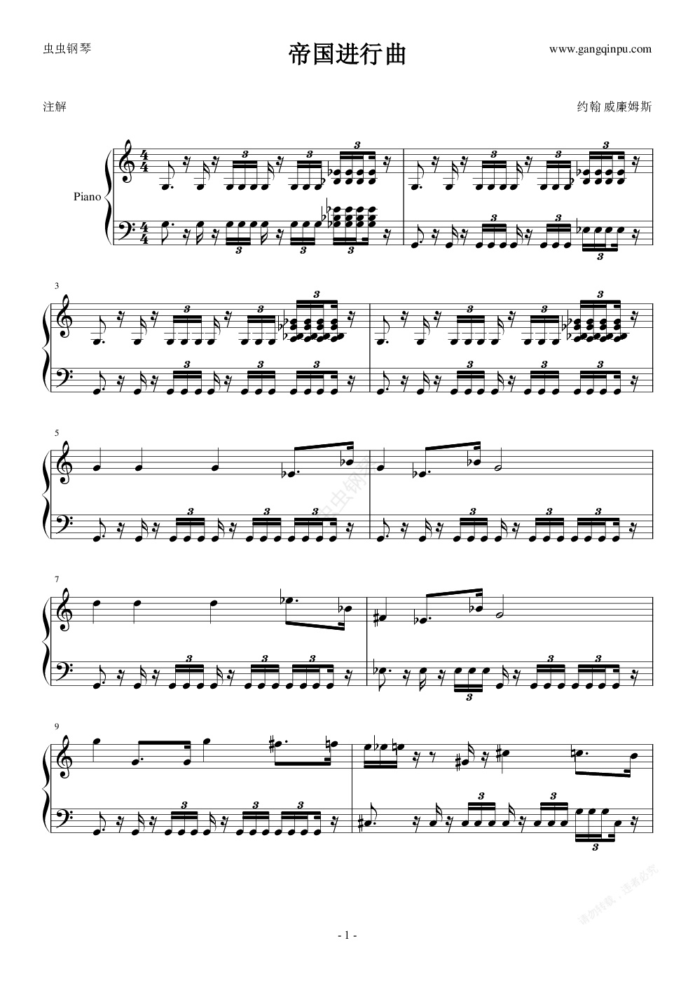 钢琴谱:帝国进行曲