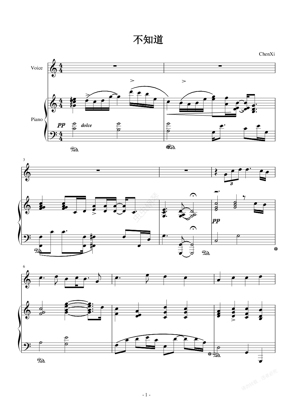钢琴谱:不知道