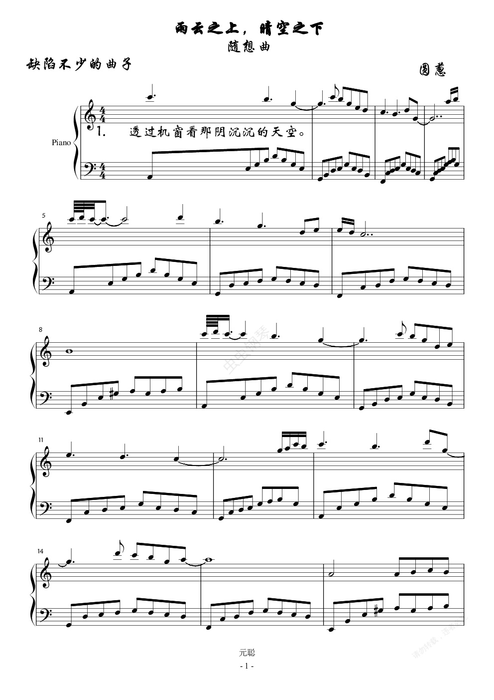 钢琴谱:雨云之上,晴空之下