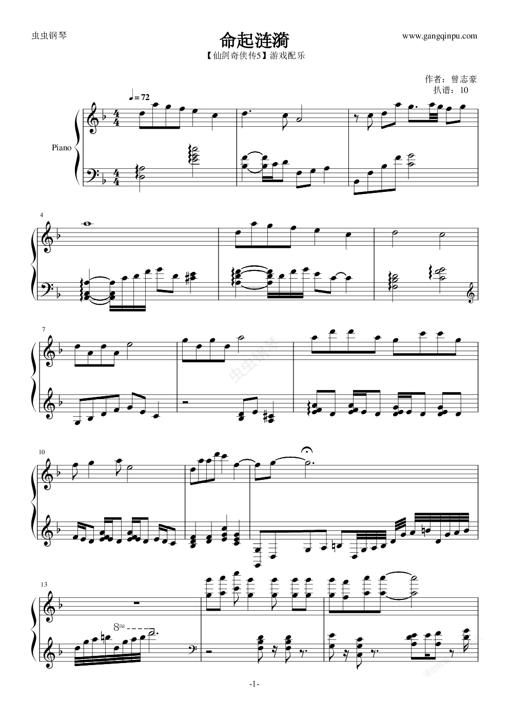 钢琴谱:【仙剑奇侠传5】命起涟漪
