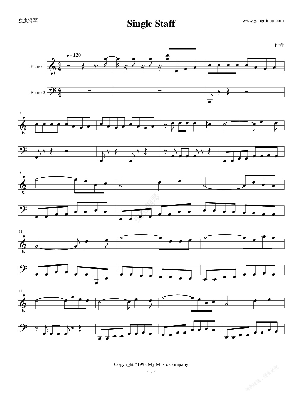 钢琴谱:FC 碰碰车