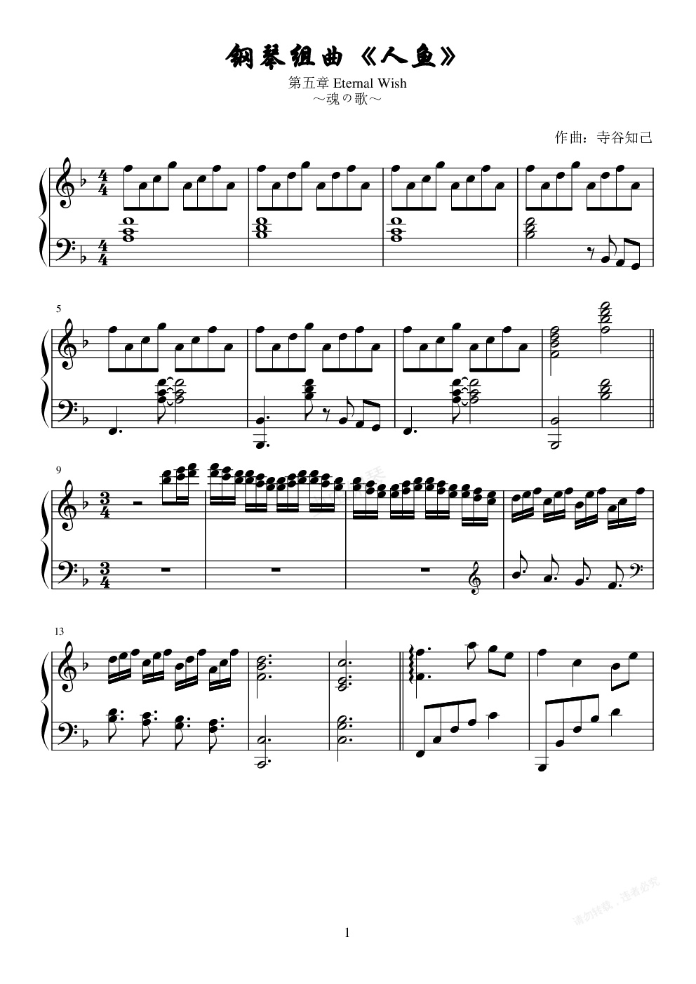 钢琴谱:人鱼钢琴 第五章 Eternal Wish