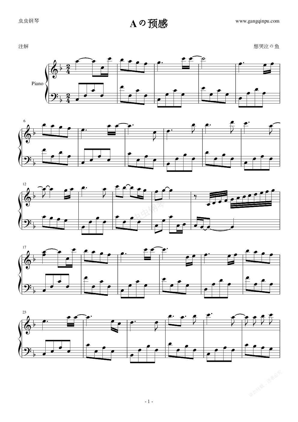 钢琴谱:柯南插曲 Aの预感 完整瞎编简单版