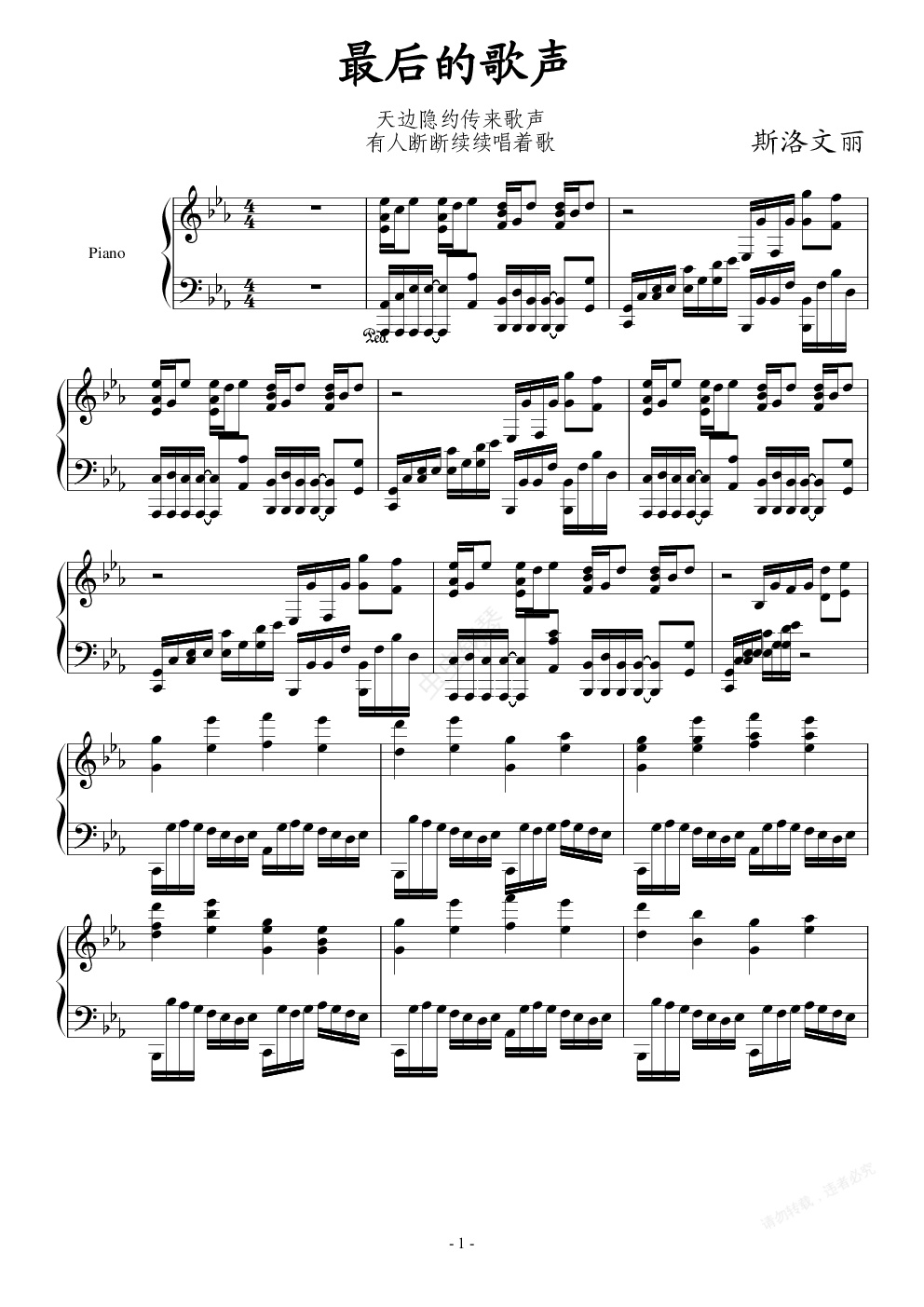 钢琴谱:最后的歌声