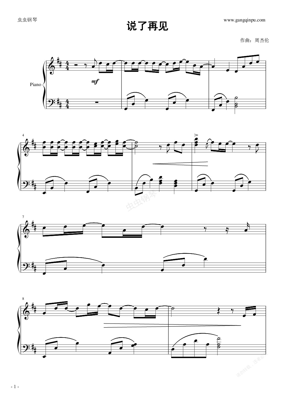 钢琴谱:杰伦的说了再见(真情独奏版)