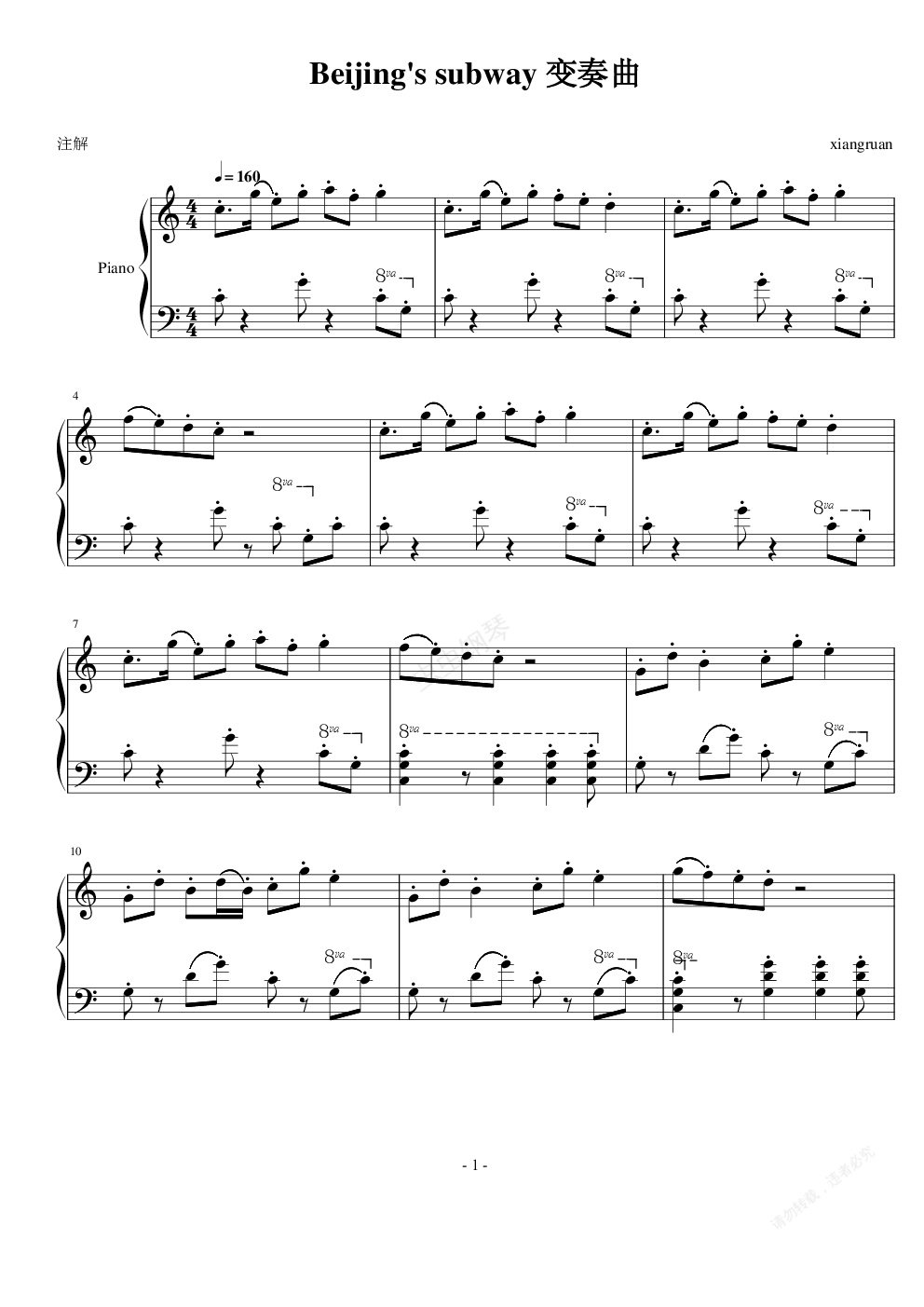 钢琴谱:Beijings subway