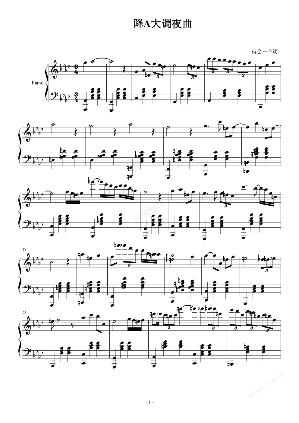 钢琴谱:降A大调夜曲