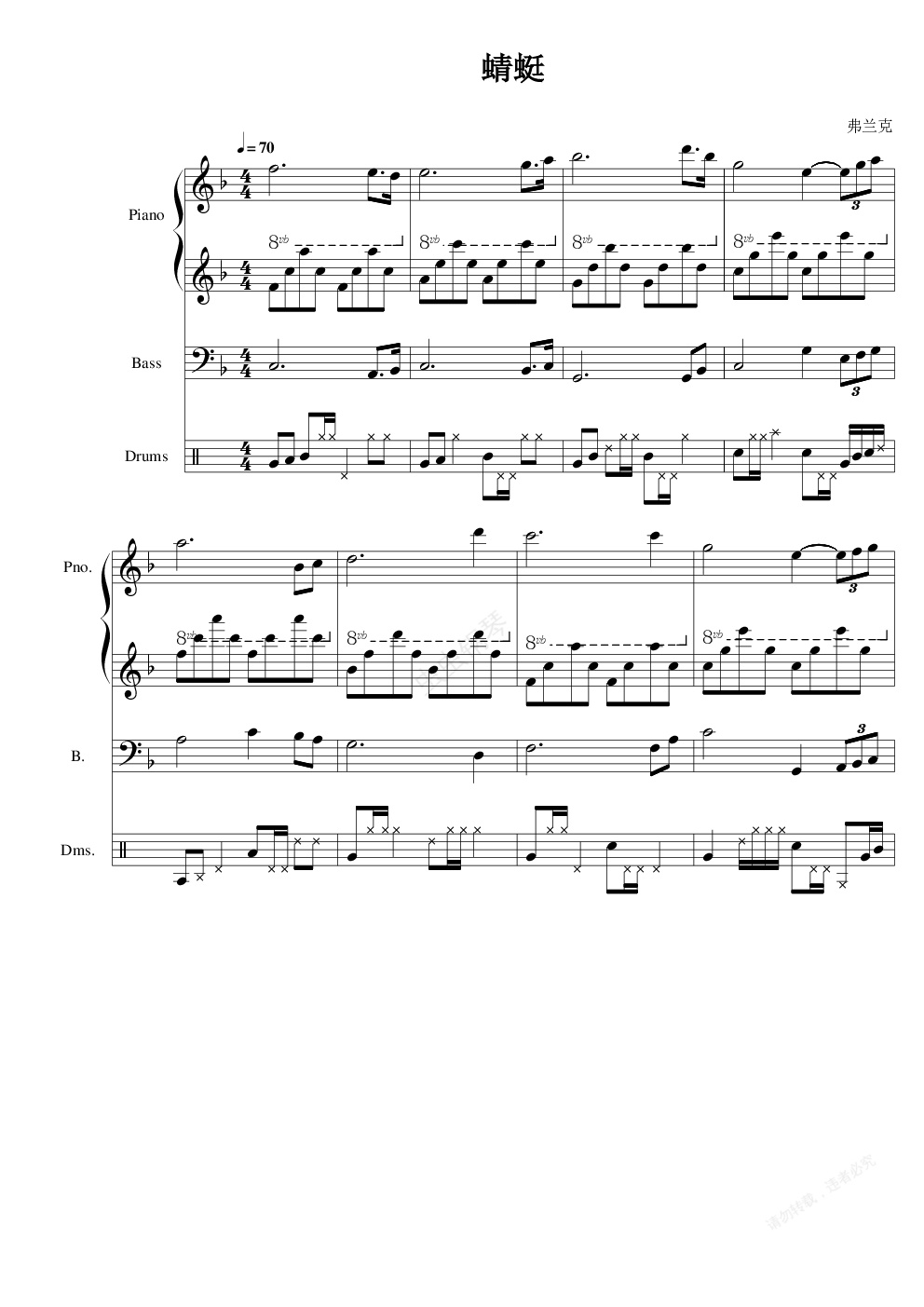 钢琴谱:蜻蜓伴奏版