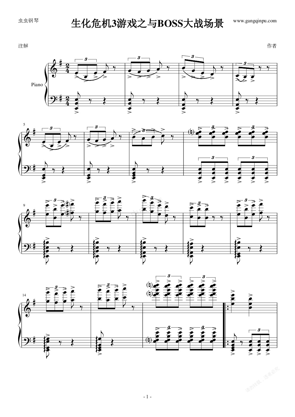 钢琴谱:生化危机之与BOSS大战场景音乐