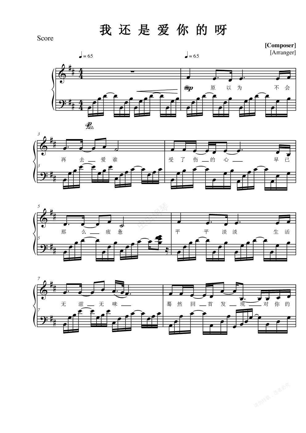 钢琴谱:我还是爱你的呀