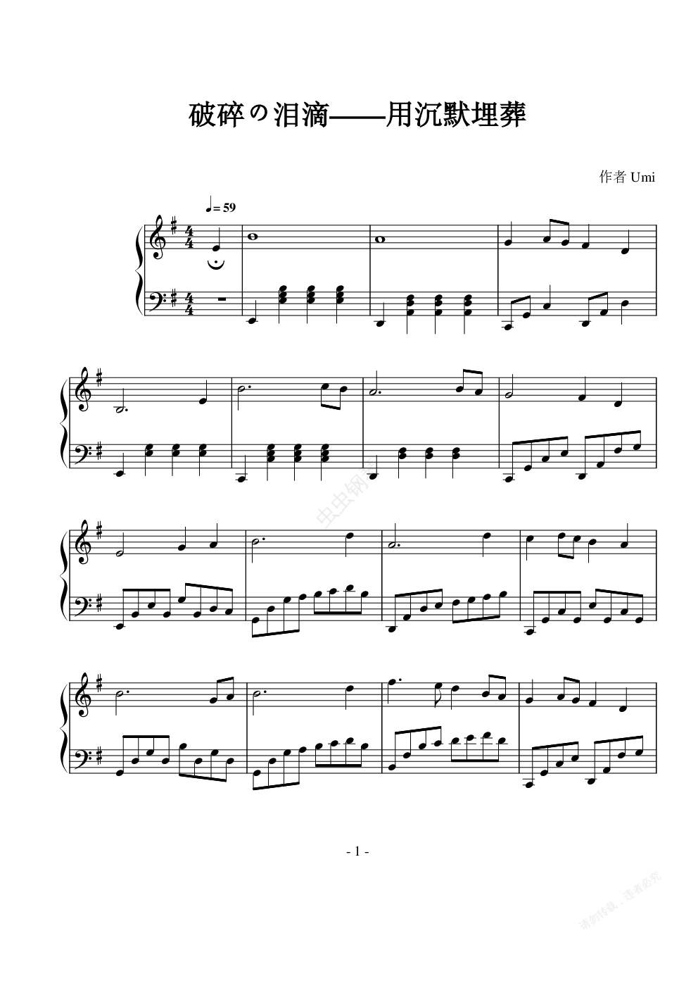 钢琴谱:破碎の泪滴 我用沉默埋葬