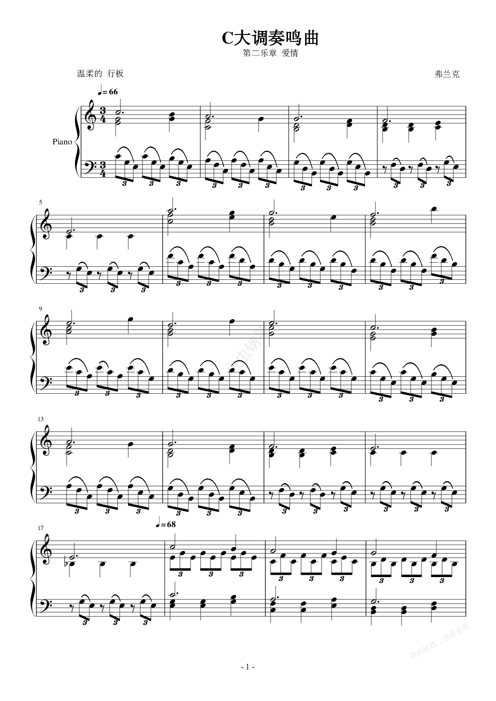 钢琴谱:C大调奏鸣曲 第二乐章·爱情·