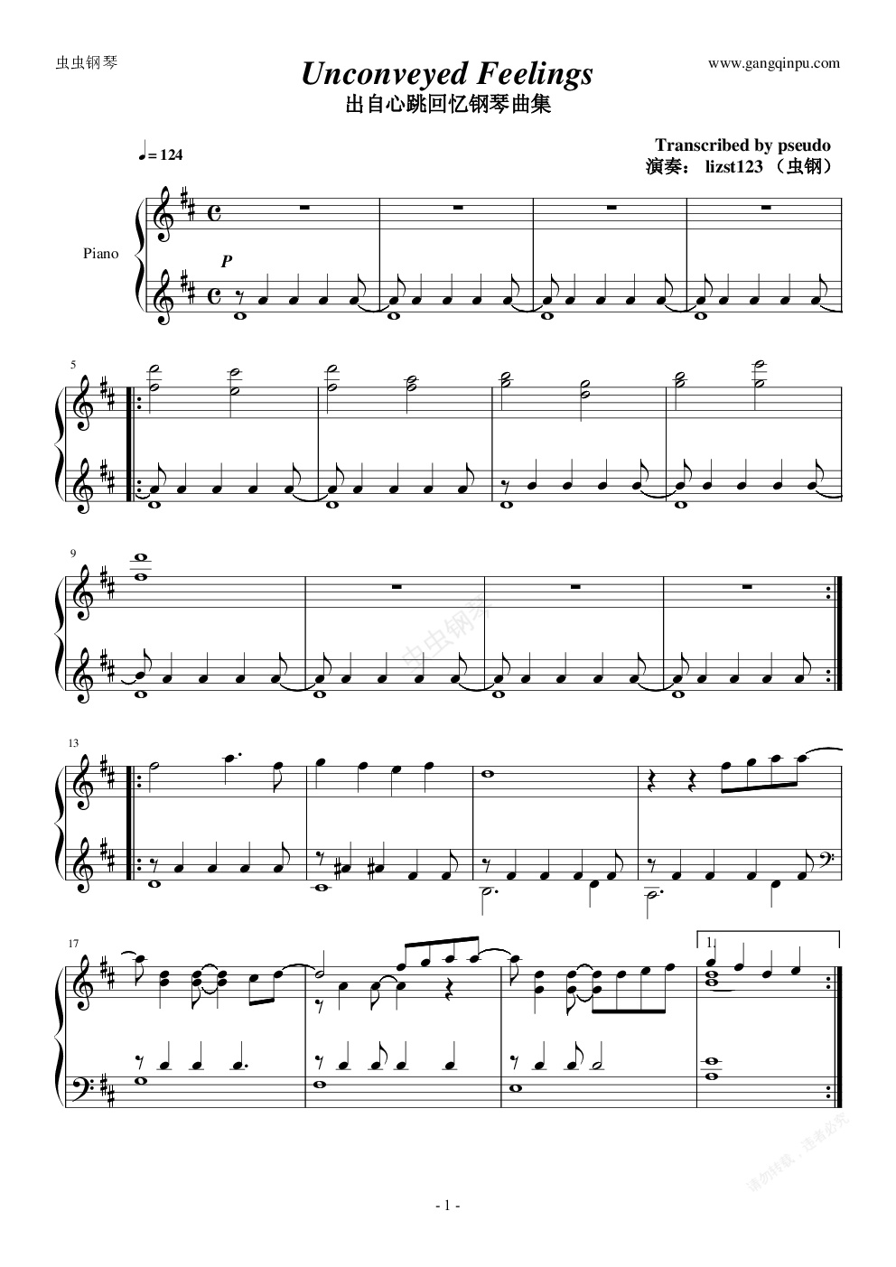 钢琴谱:Unconveyed Feelings