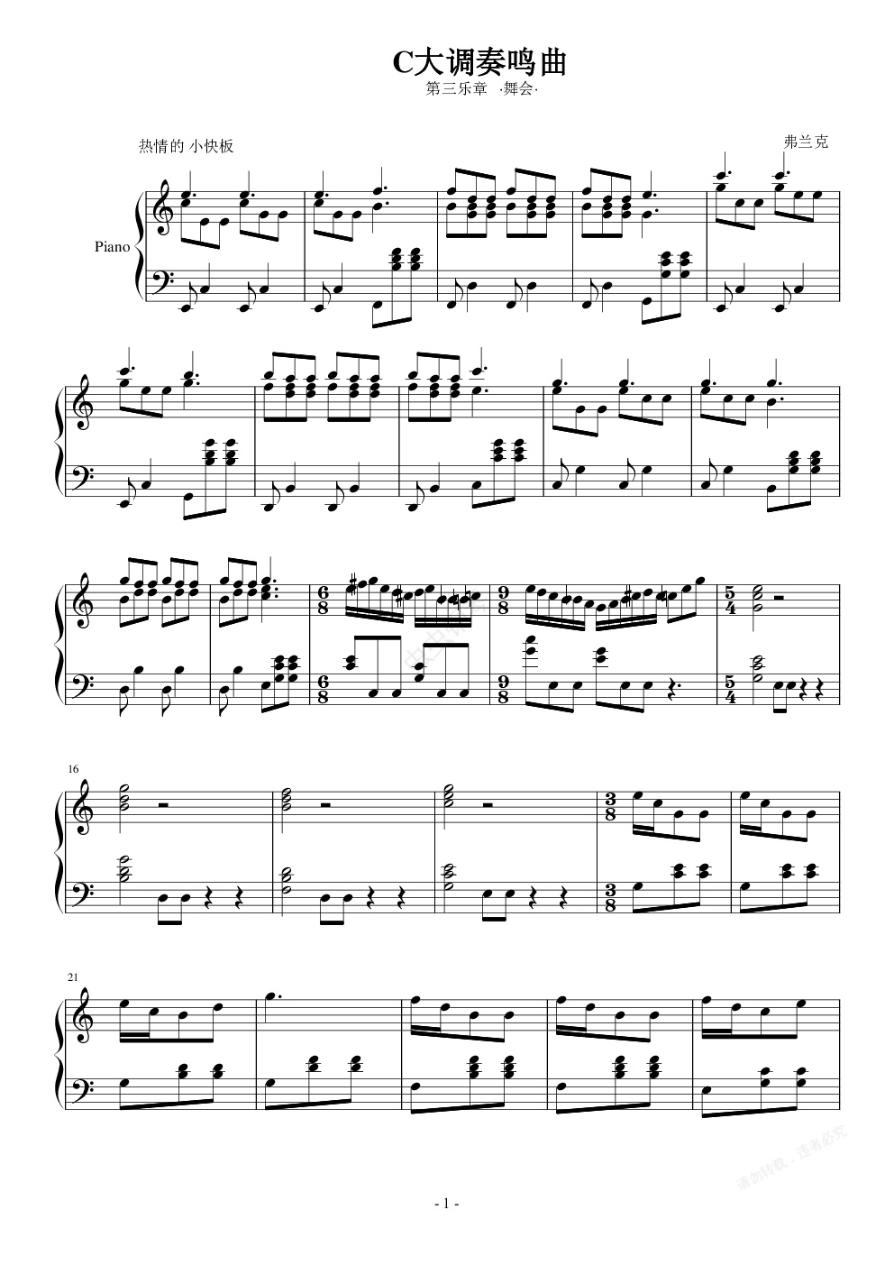 钢琴谱:C大调奏鸣曲 第三乐章·舞会·