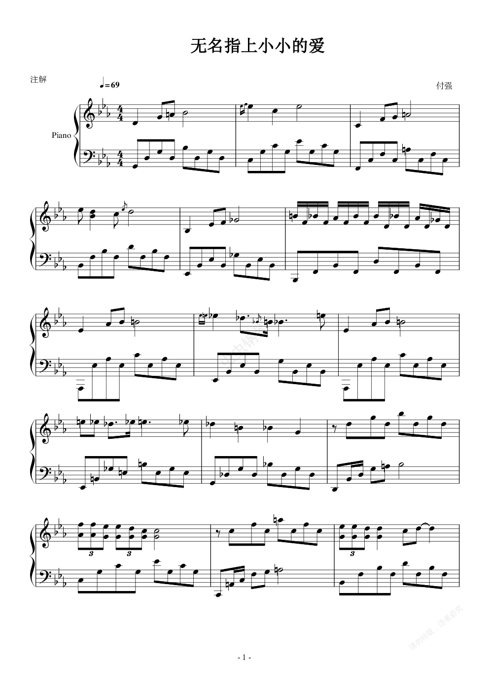 钢琴谱:无名指上小小的爱 付强