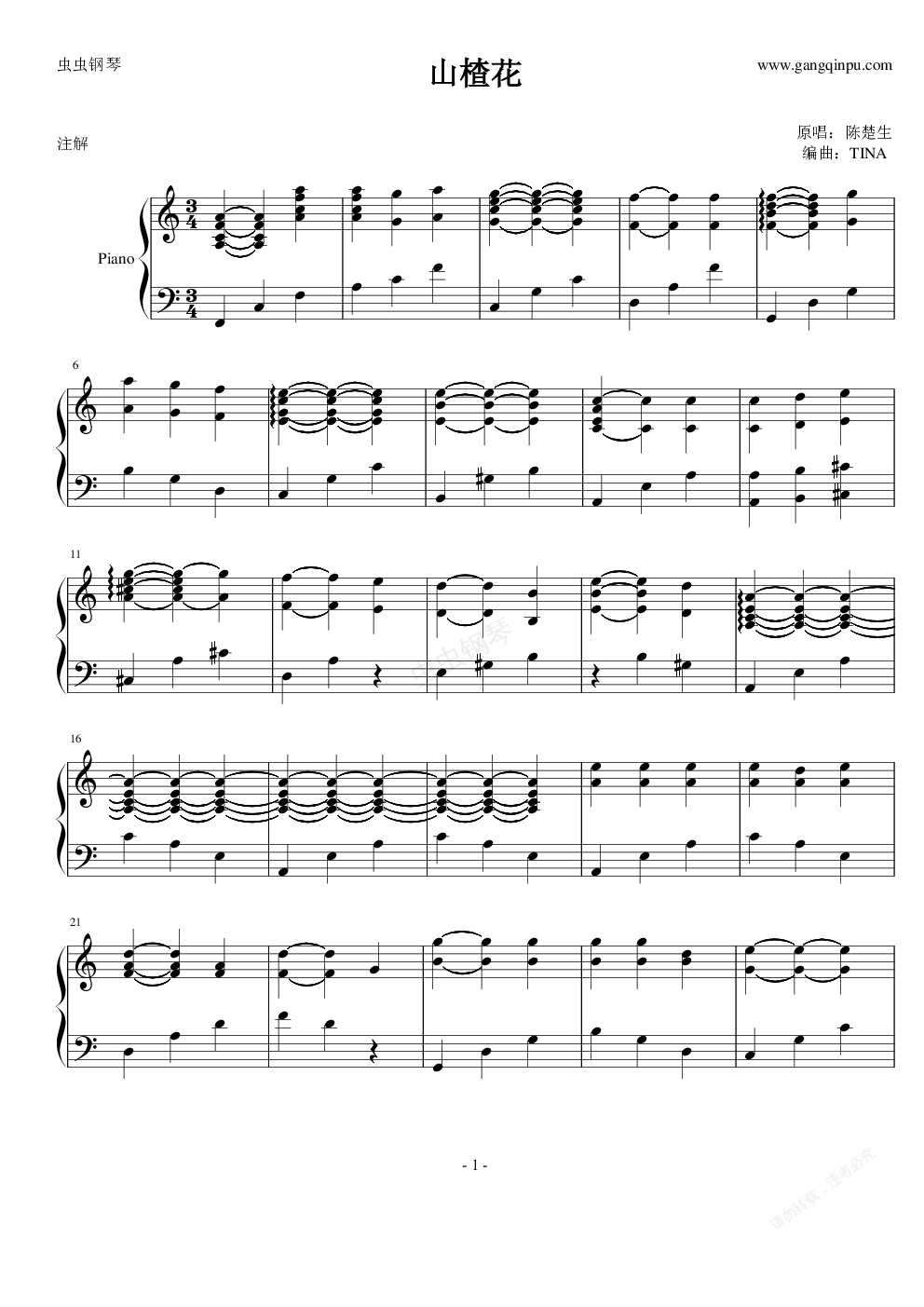钢琴谱:山楂花(电影《山楂树之恋》主题曲)