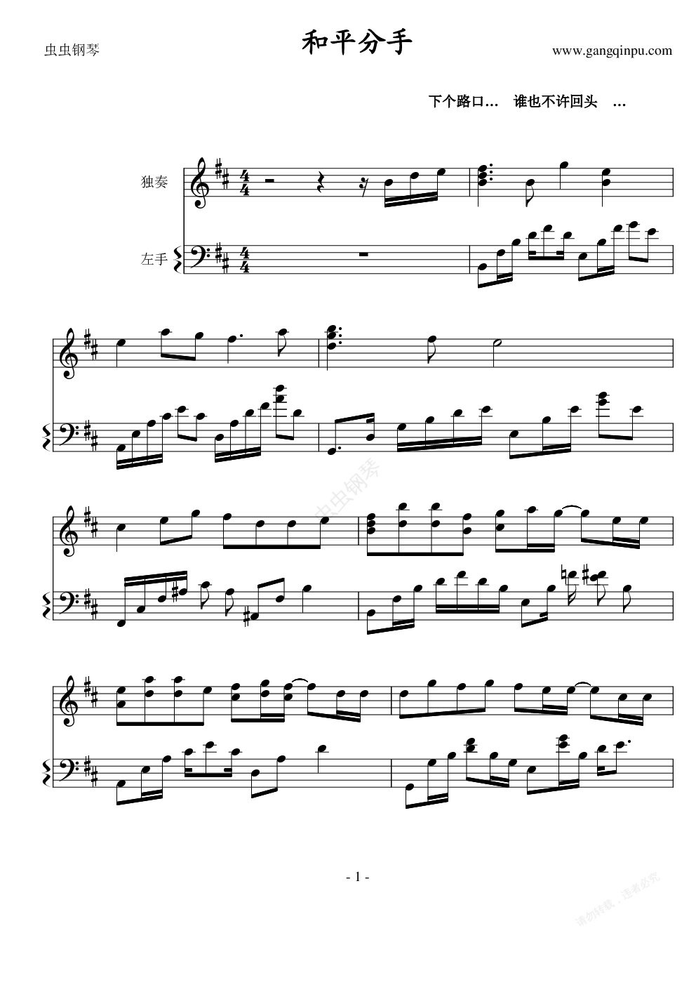 钢琴谱:和平分手