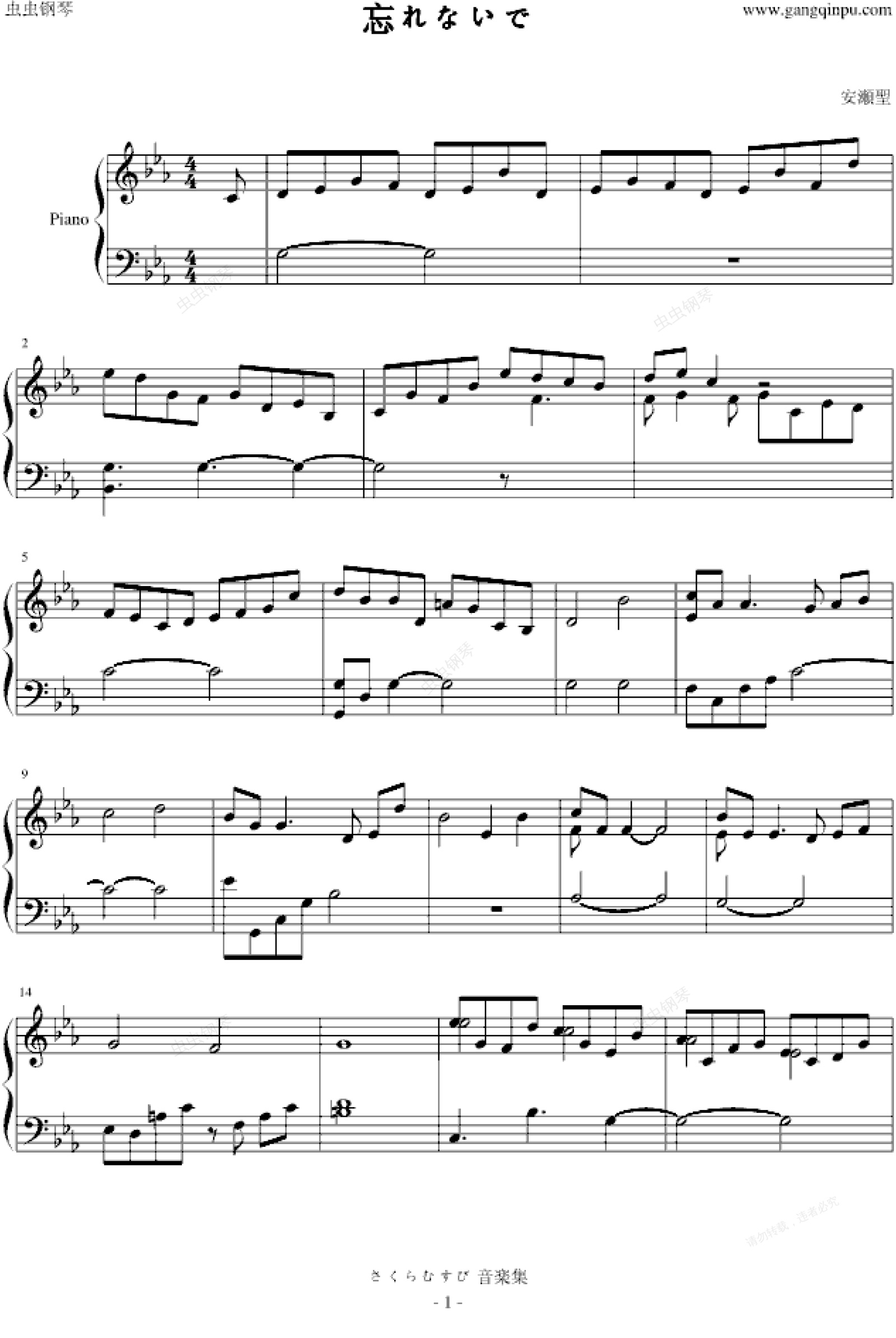 钢琴谱:忘れないで