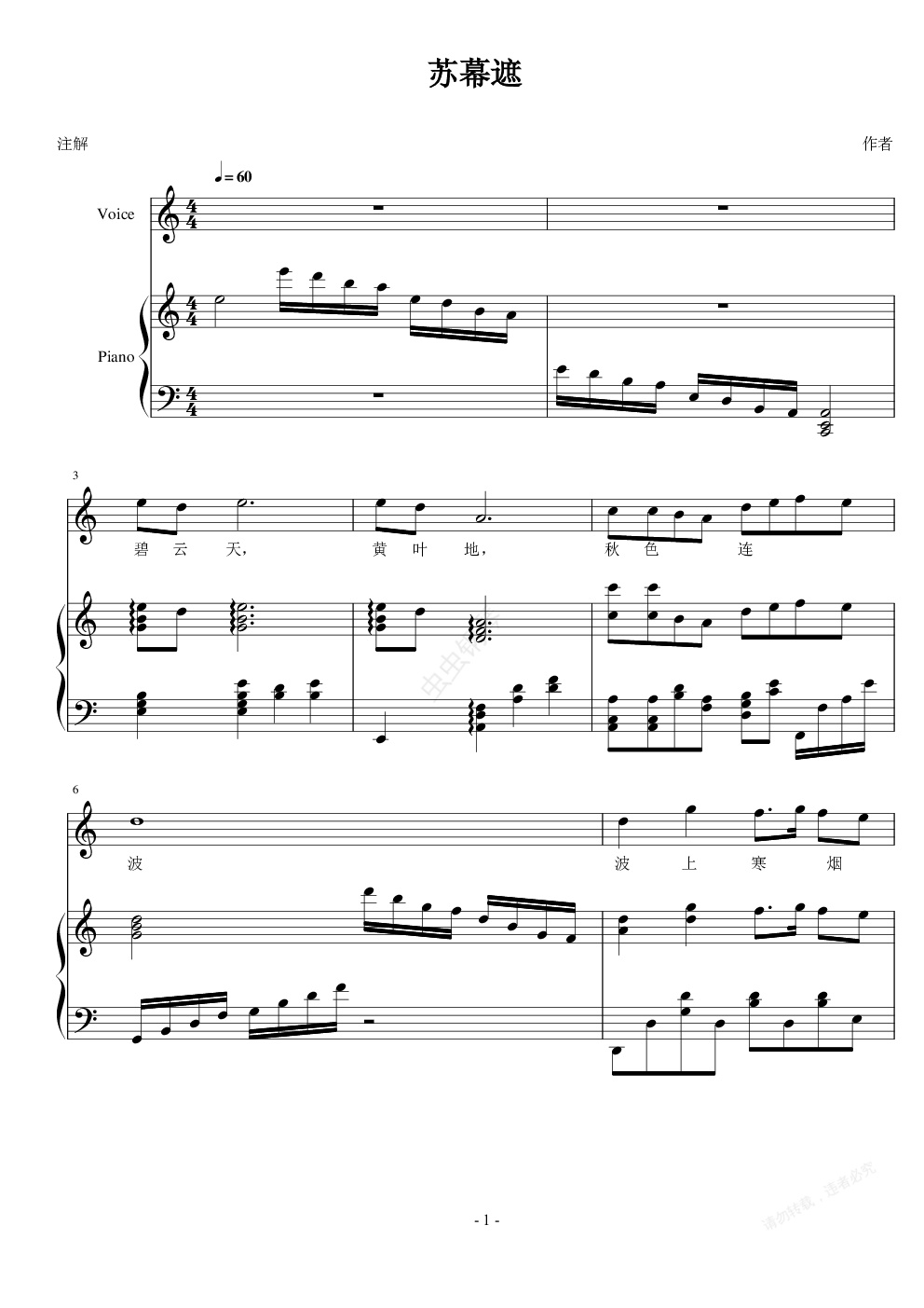 钢琴谱:苏幕遮
