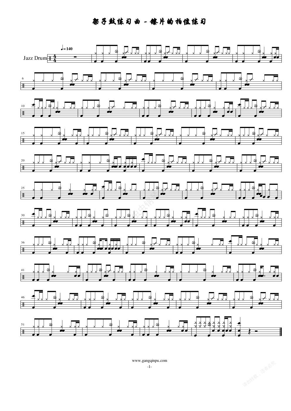 钢琴谱:架子鼓镲拍练习曲