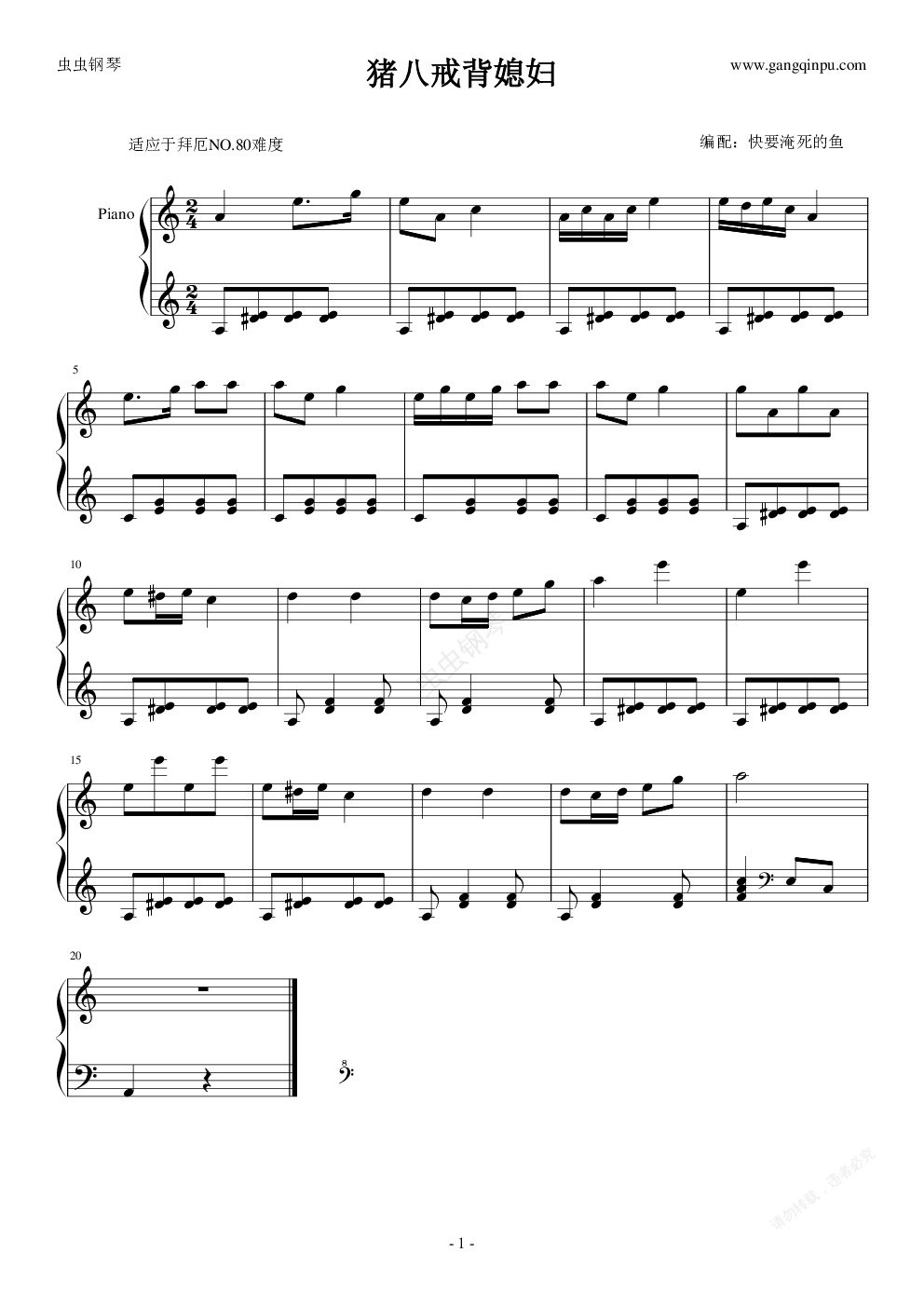 钢琴谱:猪八戒背媳妇