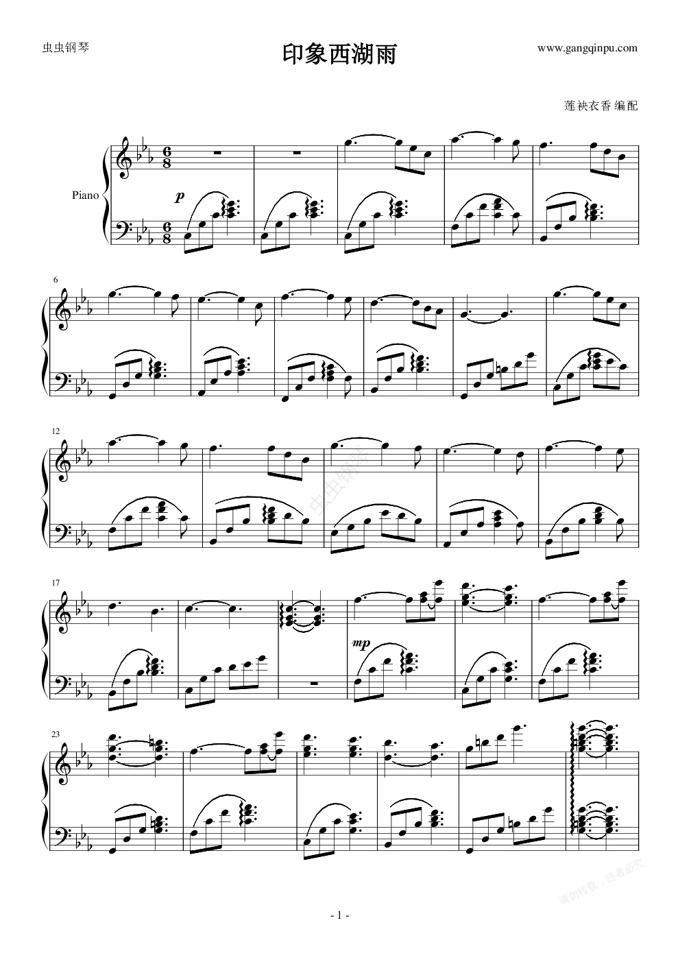 钢琴谱:印象西湖雨