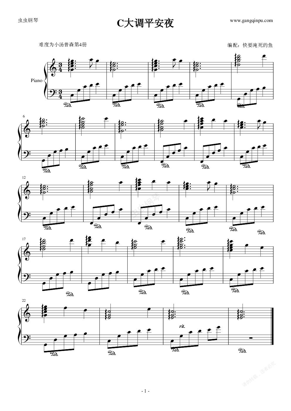 钢琴谱:简易版平安夜