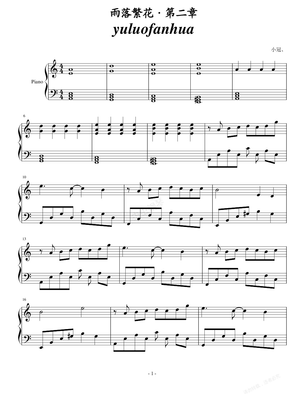 钢琴谱:雨落繁花·第二章