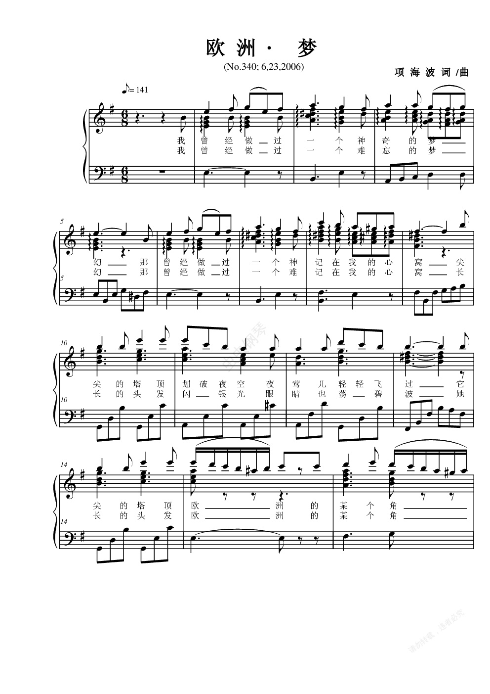 钢琴谱:欧洲·梦