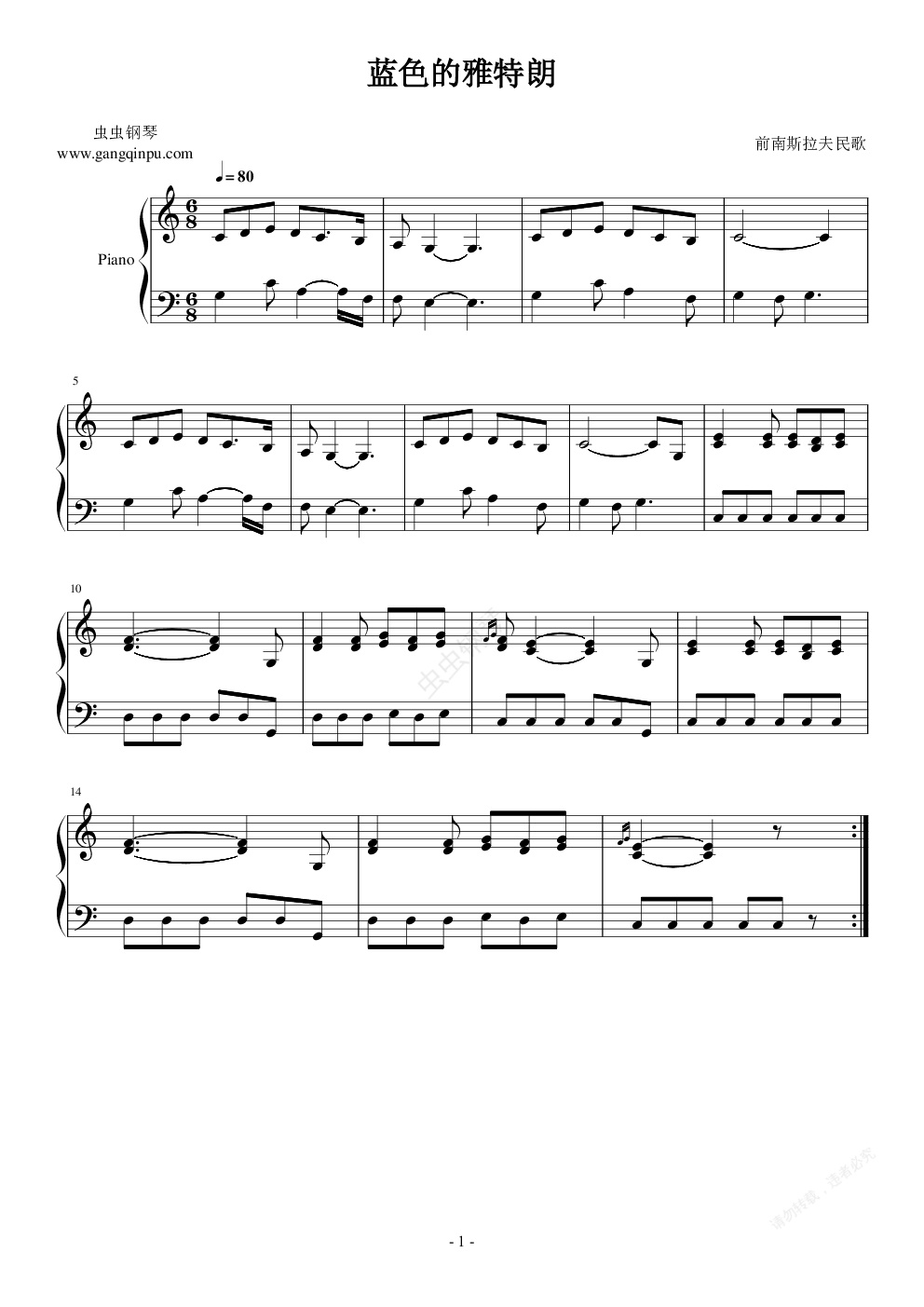 钢琴谱:蓝色的雅特朗