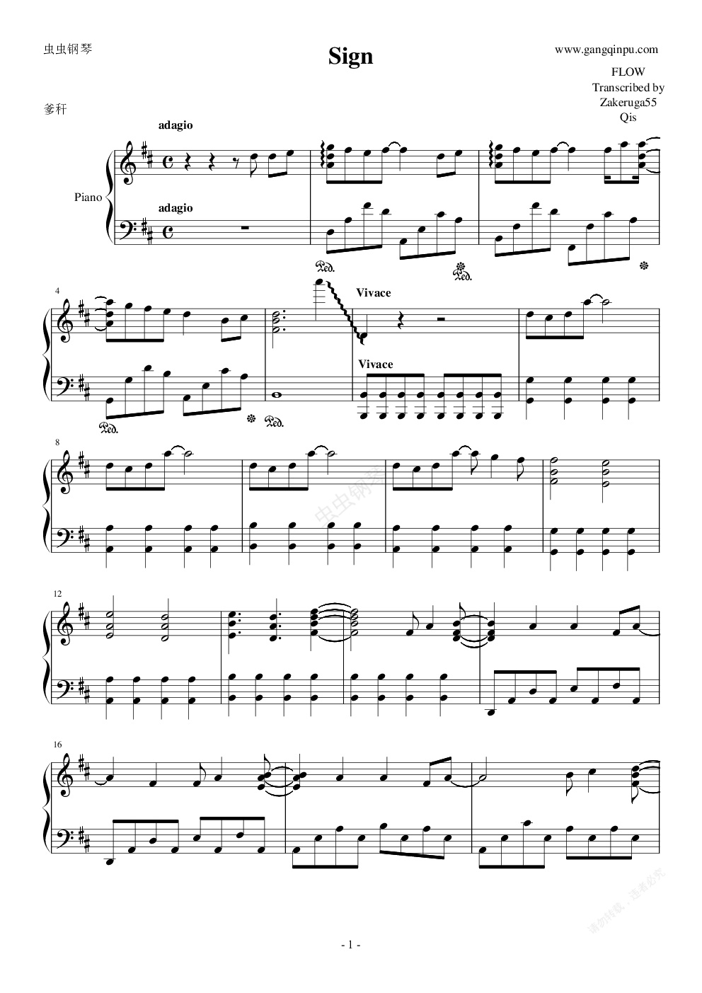 钢琴谱:火影忍者OP Sign
