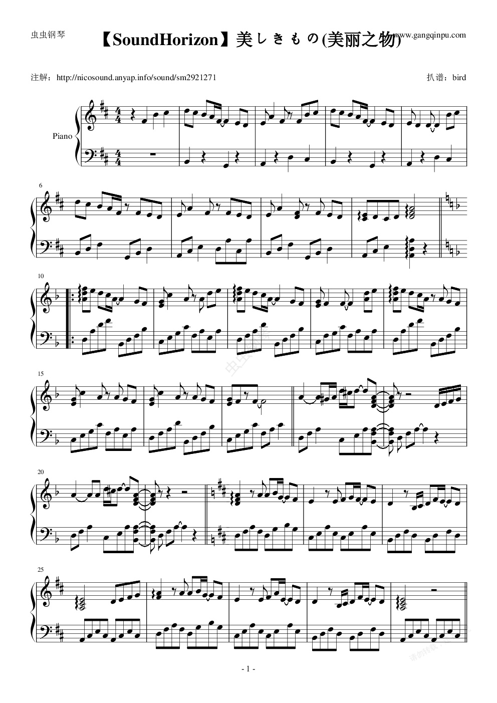 钢琴谱:【SoundHorizon】美しきもの(美丽之物)