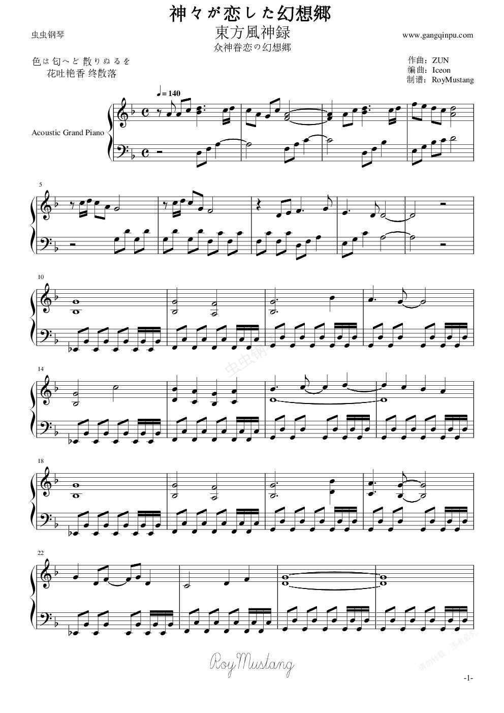 钢琴谱:[東方風神録]神眷恋の幻想郷