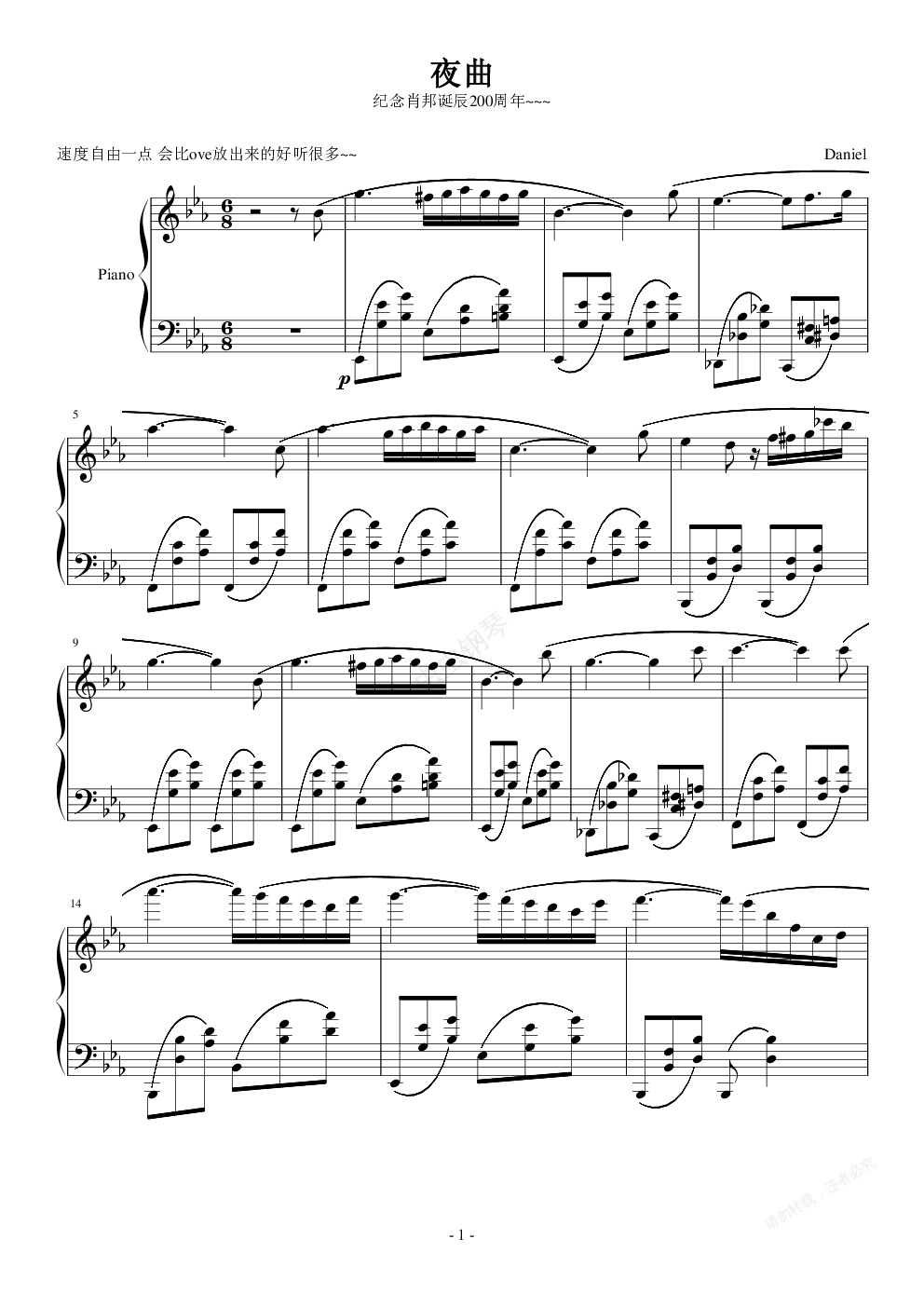 钢琴谱:夜曲~~纪念肖邦~~~