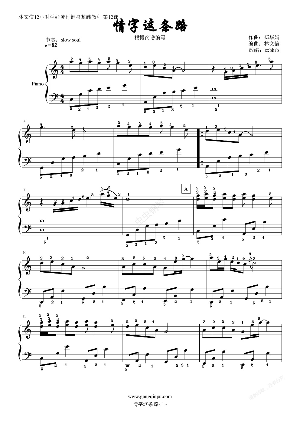 钢琴谱:《情字这条路》